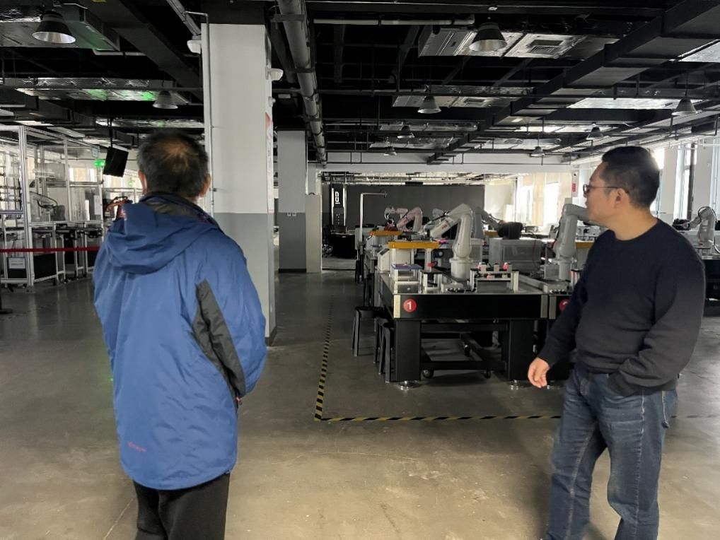 随后我们随着负责老师参观了他们的工程训练中心,他们将工训中心的负责人和公司经理设置为了同一个负责人,这更是体现了公司对实践教育的高度重视和精准统筹。工训中心先进齐全的设备以及与公司教育理念的紧密融合,为员工提供了绝佳的实践平台。在这里,理论知识与实际操作无缝对接,员工能够真正将所学运用到实践中,提升动手能力的同时,深化对专业知识的理解。这种一体化的管理模式,使得资源得以优化配置,教学安排更加科学合理。这让课题组深刻体会到,一个良好的教育管理机制对于团队成长的重要性。我们应重视实践教育环节,不断优化资源配置,为团队创造更多实践机会,培养出既具备扎实理论基础,又有较强实践能力的创新型人才。