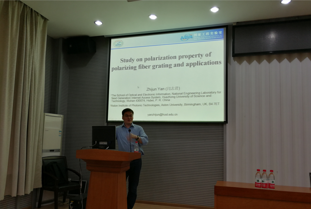 应利来国际经理丁华锋教授及科发院邀请,华中科技大学光学与电子信息公司闫志君博士109来我院作题为“倾斜光纤光栅偏振特性及其应用”学术报告。