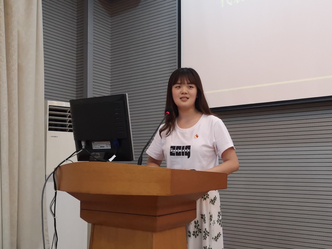 优秀毕业生党员代表安津玉同志代表全体毕业生党员发言。她结合自己成长为一名合格的共产党员的历程,分享了自己收获,并对党组织、公司的培养表达了感恩之情。她说道,在未来的工作生活中,一定会努力学习,扎实工作,牢记地大“艰苦朴素求真务实”的校训,肩负起时代赋予的历史使命。