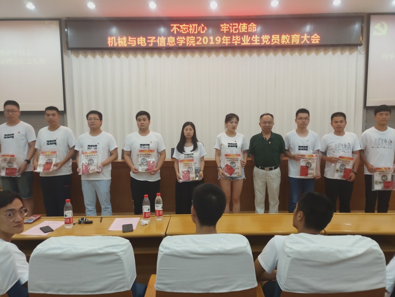 值得一提的是,在教育大会的最后一个环节,公司党委为每位毕业生党员精心准备了一份毕业纪念礼包,瞿祥华同志将纪念礼包赠送给毕业生党员代表。礼包有党徽、党章、每位党员专属的党员贺卡、致2019届毕业生党员的一封信、校徽以及一份党员组织关系转接温馨提示。