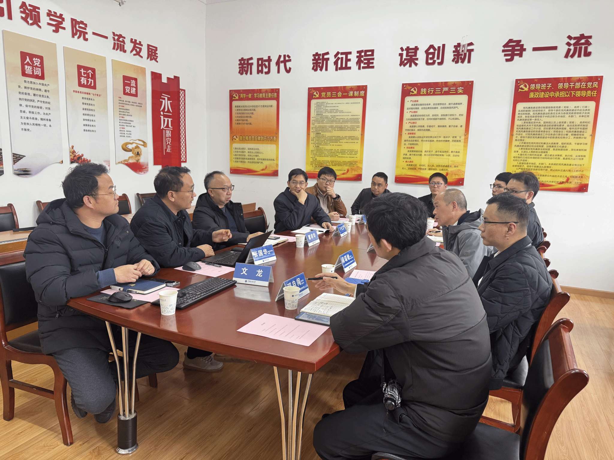 会议由公司党委书记瞿祥华主持,中国电建集团湖北工程有限公司副总经理、总工程师张秋明一行五人出席会议,新能源公司张国华教授和利来国际宁伏龙经理、葛明峰副经理、文龙副经理、曹文熬和段男奇等教师代表参加交流。