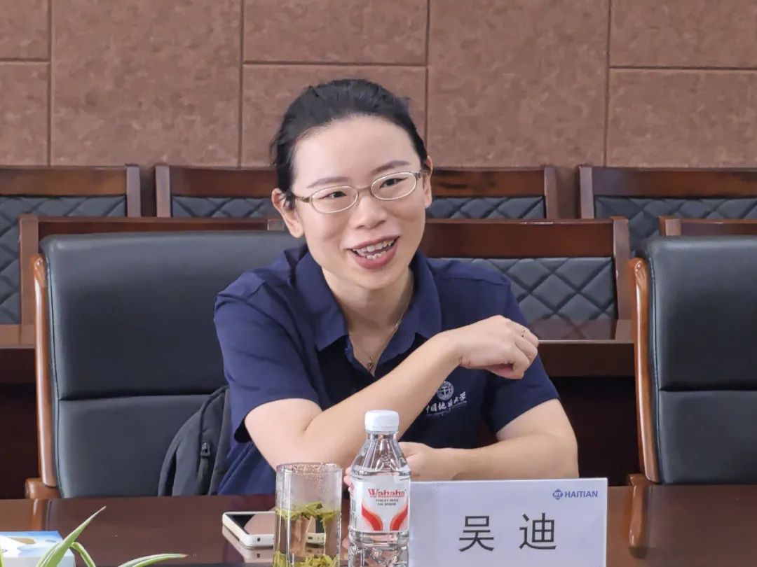 吴迪代表公司感谢海天集团提供了优质实习与就业平台,她介绍了公司员工特点,即理论基础扎实、学科竞赛成绩突出、具有不怕吃苦的奋斗精神和较强的实践驱动力,这些特质在制造业实践中得到了充分展现。她表示,公司毕业生对海天集团的工作环境、生活条件普遍满意,入职后展现出积极的精神风貌,公司愿持续深化合作,引导更多优秀毕业生到海天集团工作。