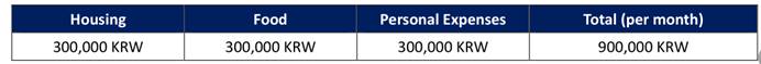 4. 费用:免学费,住宿费公司按照6000元人民币/人(安山校区)、12000元人民币/人(首尔校区)标准予以资助,其他费用自理。