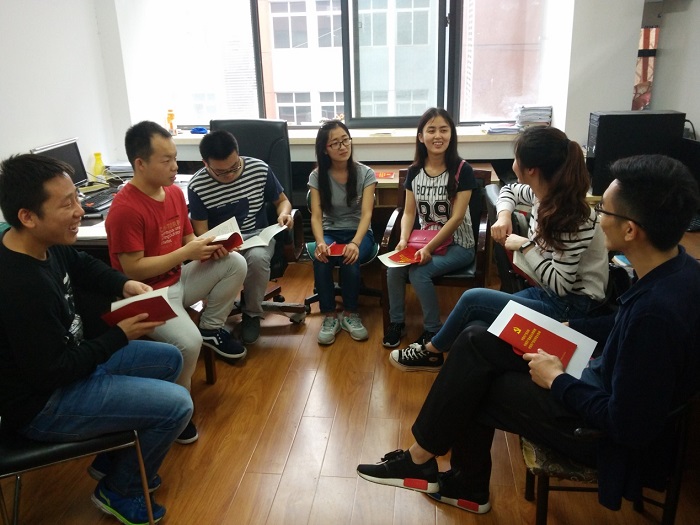 首先,各成员重温了入党誓词,感受入党初时的热血和激情。随后,支部成员在支部书记的带领下,深入学习了党章的纲领及第一章——党员的主要内容,重温我党的发展历程,领悟我党方针政策,感受党章对党员的要求与职责。在谈感悟时,张文君同志从大方面谈到,“党员的权利与义务要随时代的发展而被赋予新的意义,富强、民主、文明、和谐、自由、平等、公正、法治、爱国、敬业、诚信、友善的社会主义核心价值观应渗透到每个党员、每个人的日常生活中。新一代的员工党员要在社会的发展和进步中,紧跟时代步伐,不忘根本,志存高远,脚踏实地,求真务实。”在交流互评中,徐晴同志针对张文君的发言指出“就小处而言,作为员工党员,最关键的还是能在各个方面做好先锋模范作用,包括道德、学习、科研及工作。以梦为马,不负韶华。”随后,钟剑文同志就徐晴的发言指出,“新生代员工党员要除了做好先锋模范作用外,要敢于有自己的想法,积极探索新的发展形式,为社会主义建设发掘更多的可能。”其余成员也在谈论中积极发表了自己的看法。