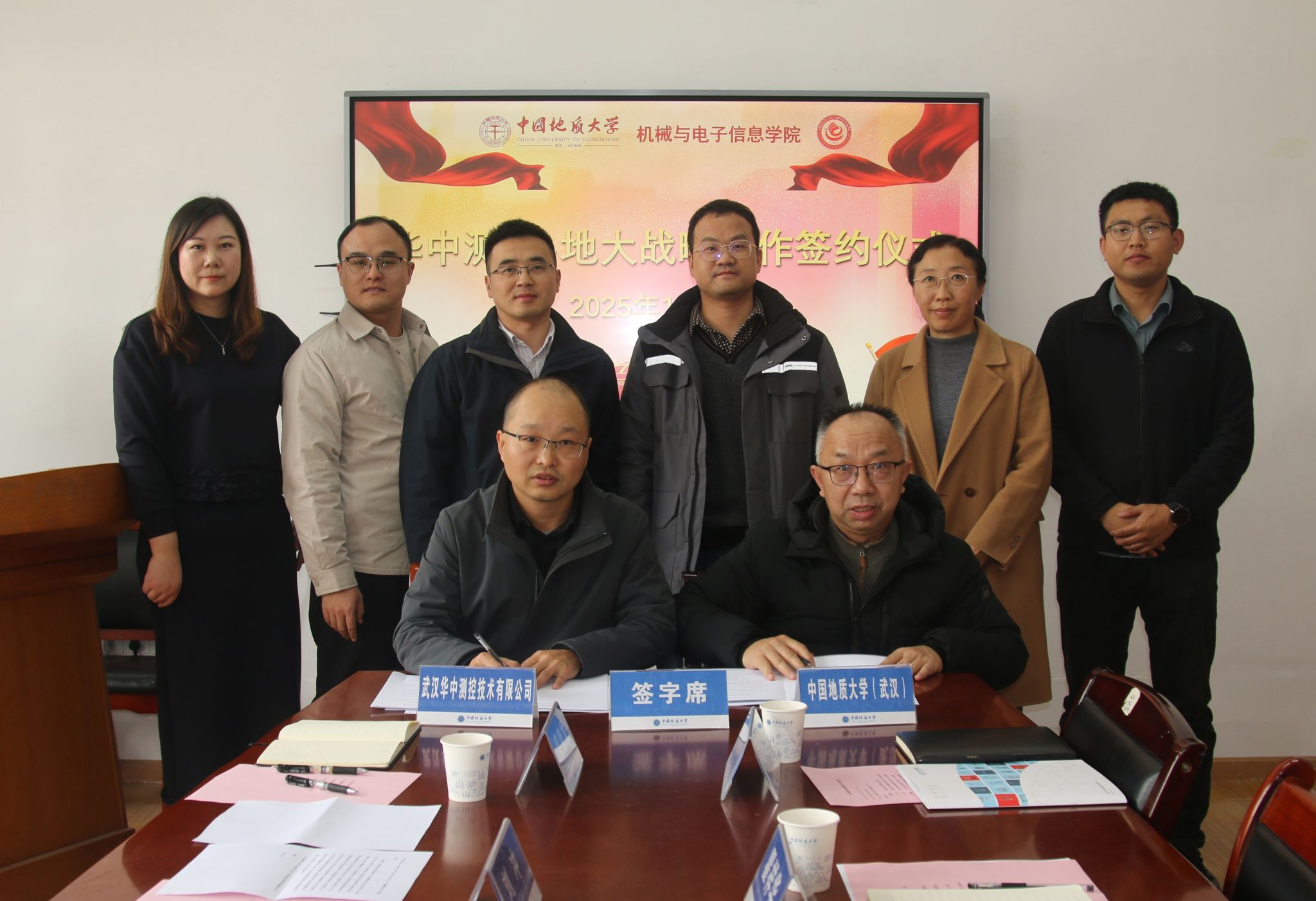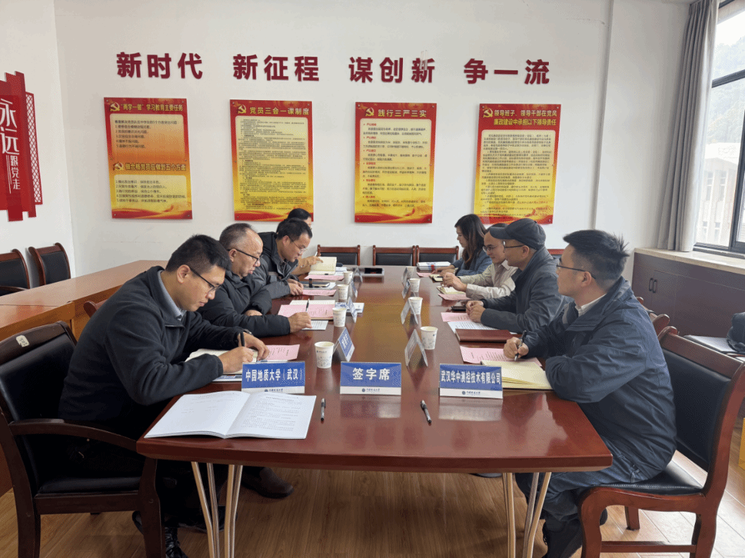 在双方代表的共同见证下,瞿祥华书记与刘冲副总经理正式签署战略合作协议,路桂英与刘冲副总经理签署技术开发合同,此举标志着地大公司与华中测控的合作迈入实质性阶段。